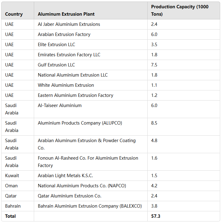 Table 3: Aluminum Extrusion Plants and Production Capacities in GCC Countries